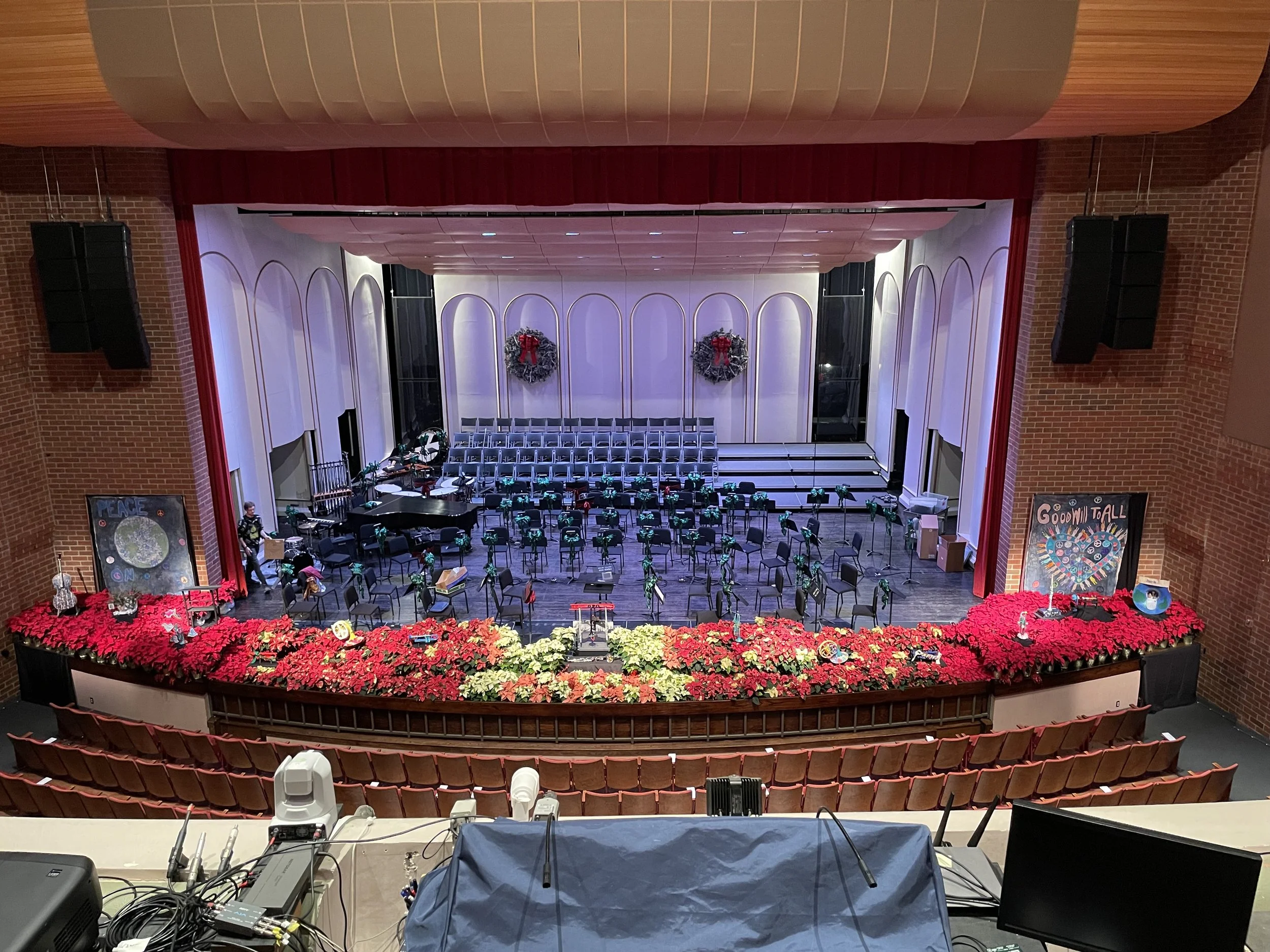 Add an exceptional stage adorned with poinsettia plants and community artwork.
